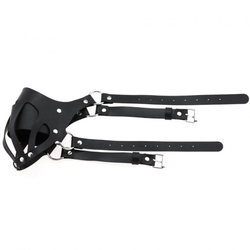 Нескромная маска БДСМ "Disguise" для любителей доминировать и подчиняться. Выполнена из экокожи, декорирована металлическими заклепками.