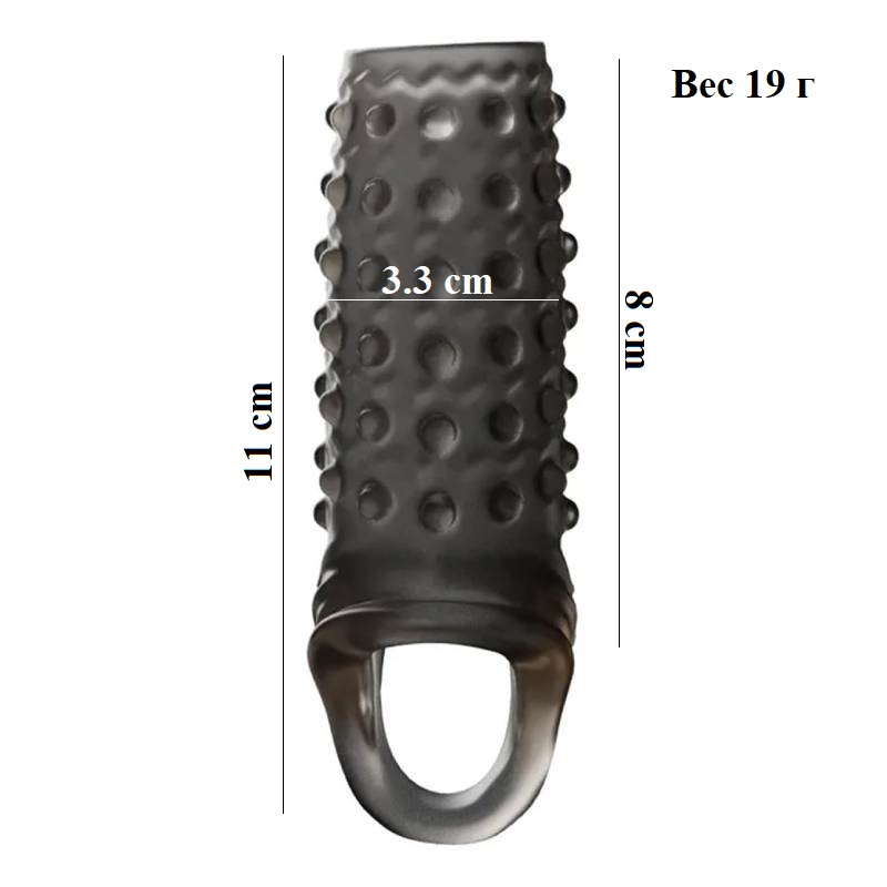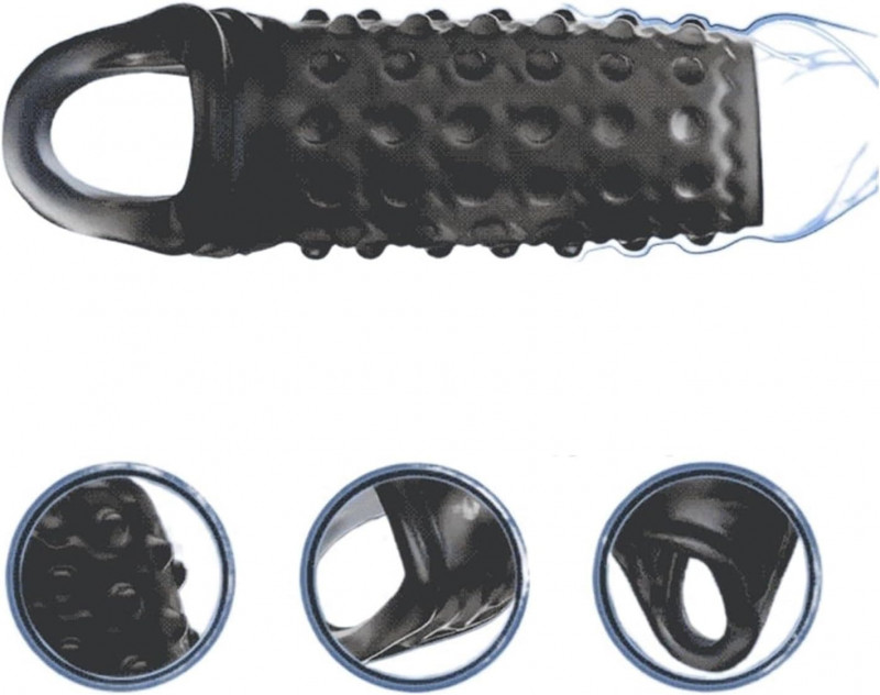 Закрытая насадка на пенис для увеличения размеров мужского полового органа. На поверхности изделия имеются небольшие шипики, выпуклости и рёбрышки для дополнительной стимуляции партнёрши.