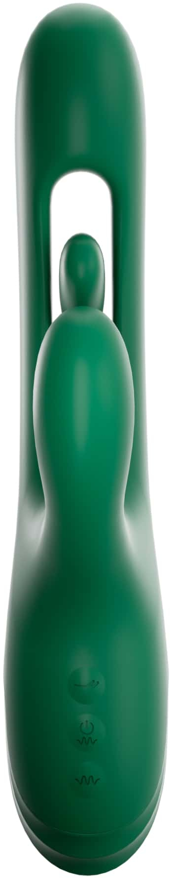 Верхняя кнопка отвечает за включение манящих движений на клиторальной части, нижняя за пульсацию в вагинальной.